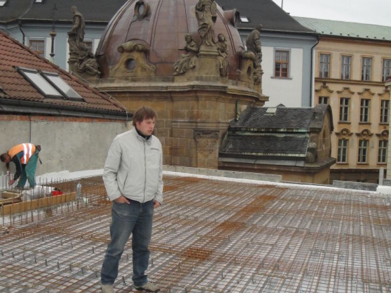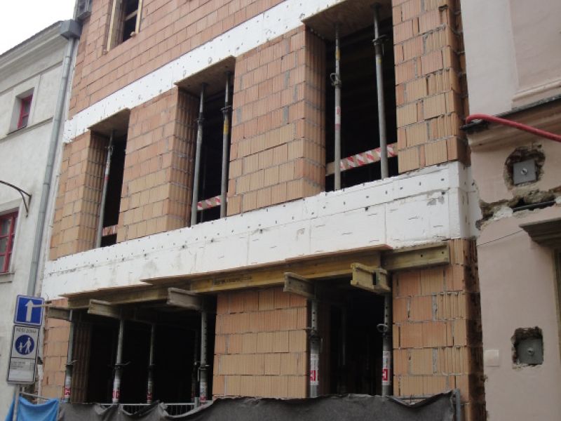 - Předmětem projektu je výstavba čtyřpodlažního objektu v proluce stávajících objektů. Stropní konstrukce jsou navrženy jako železobetonové a ocelobetonové spřažené uložené na zdivu. Založení je provedeno hlubinně na injektovaných mikropilotách.