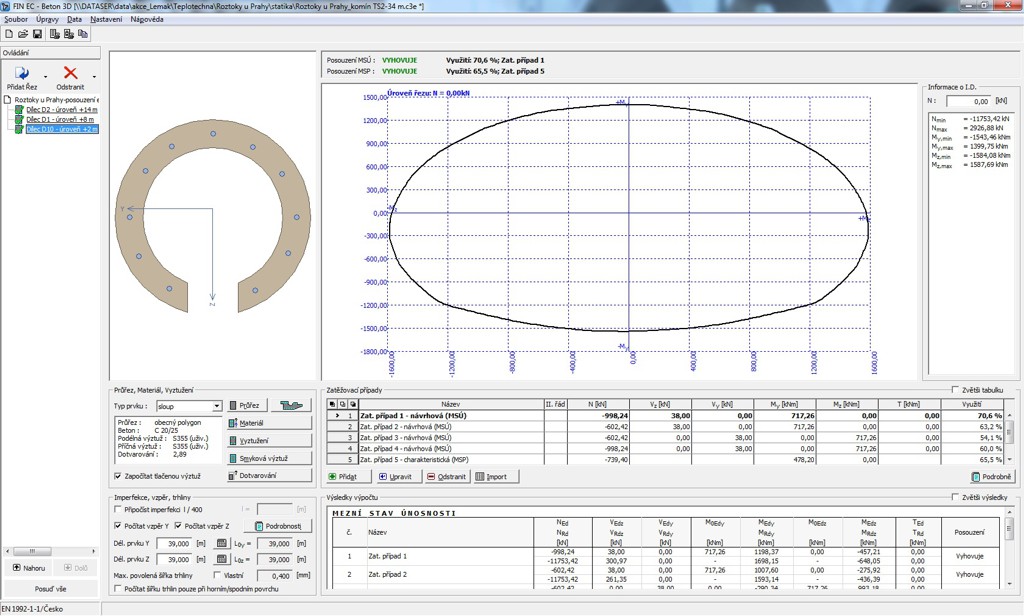 program je používán pro statický výpočet jedno a vícepodlažních, železobetonových a předpjatých sloupů, popř. s po výšce lineárně proměnným, polygonálním průřezem s otvory a s libovolnými pracovními diagramy materiálů pro beton, výztuž a předpjatou výzuž, s iterativním návrhem na mezním stavu únosnosti a implicitním zohledněním deformací sloupu (tj. v teorii II. řádu zahrnující vzpěrnou stabilitu přímo do nelineárního výpočetního modelu vnitřních účinků) a současným zohledněním efektivních tuhostí průřezů po výšce sloupu namáhaného na šikmý ohyb s popř. excentrickou normálovou silou