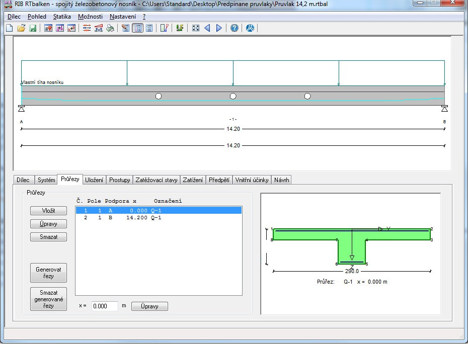programem lze provádět statické výpočty a navrhování železobetonových a předpjatých spojitých nosníků. Návrhy železobetonových a předpjatých nosníků pozemních staveb jsou volitelně možné podle norem EN 1992-1-1, ČSN EN 1992-1-1, DIN EN 1992-1-1, DIN 1045-1, ÖNORM B 1992-1-1, BS EN 1992-1-1 a příslušných zatěžovacích národních norem řady EN 1990