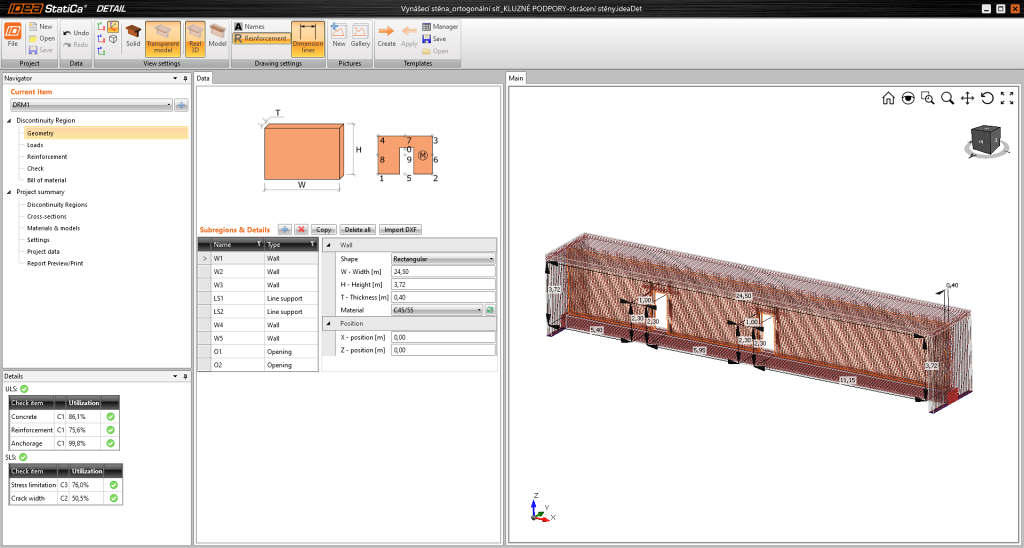 Program umožňuje návrh všech částí konstrukce, které jsou taky známé jako oblasti diskontinuit. Zejména stěny, ozuby, otvory, krátké konzoly a nadpodporové oblasti. Poskytuje přesné posudky betonu a vyztužení, včetně napětí a přetvoření.