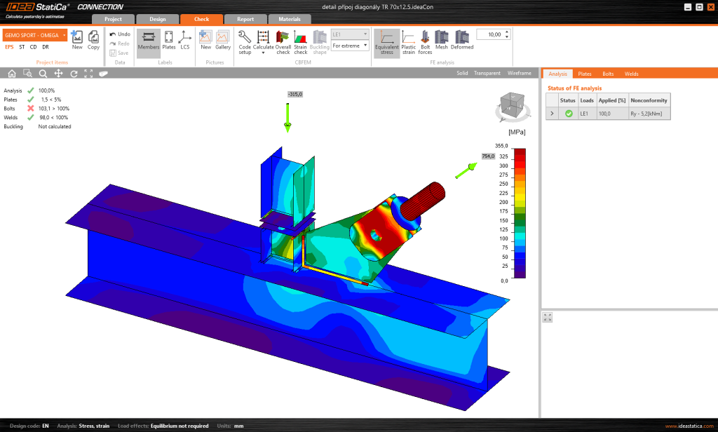Program umožňuje navrhnout všechny typy svařovaných nebo šroubových spojů, patních plechů, patek a kotvení. Poskytuje přesné výsledky posouzení pevnosti, tuhosti a vzpěru ocelového styčníku. Šrouby, svary a betonové patky se posuzují podle EC / AISC