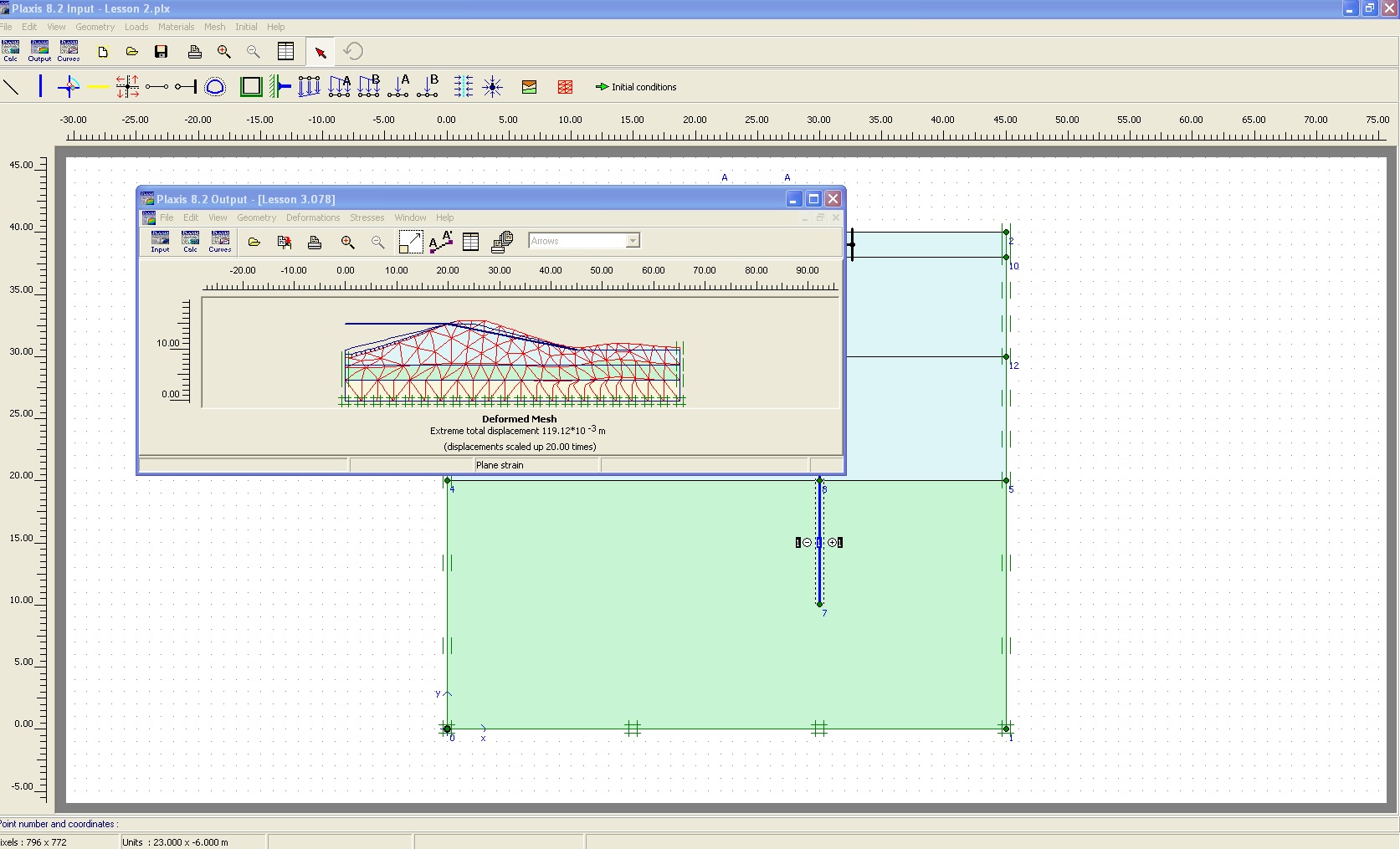 program řešící pomocí MKP napjatost a deformace stavebních jam a ovlivněné okolí oblasti při zohlednění všech stádií výstavby. Program používá osvědčené řešiče FEM PLAXIS umožňující lineárně-pružné a elasticko-plastické (Mohr-Coulomb) výpočty