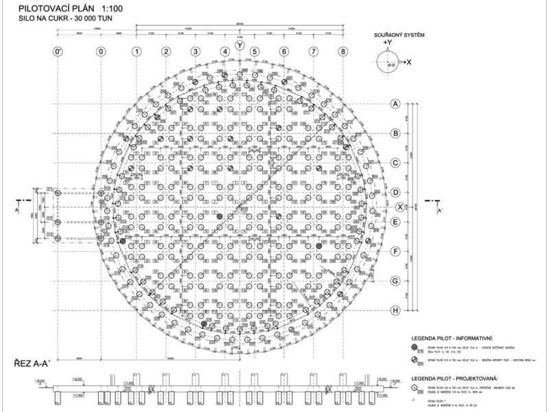 • návrh založení železobetonové konstrukce sila na základové desce podporované skupinou vrtaných pilot v technologii CFA.