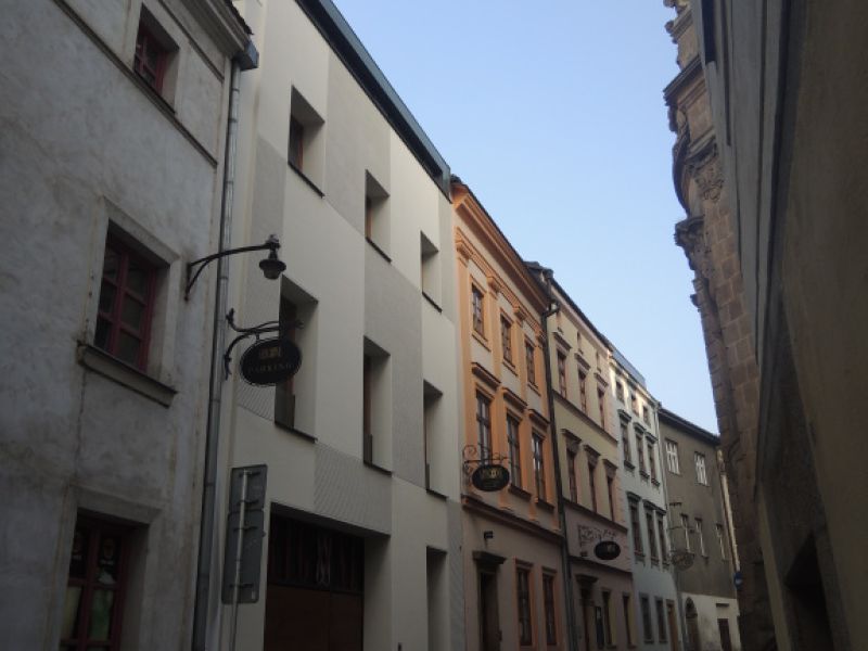 - Předmětem projektu je výstavba čtyřpodlažního objektu v proluce stávajících objektů. Stropní konstrukce jsou navrženy jako železobetonové a ocelobetonové spřažené uložené na zdivu. Založení je provedeno hlubinně na injektovaných mikropilotách.