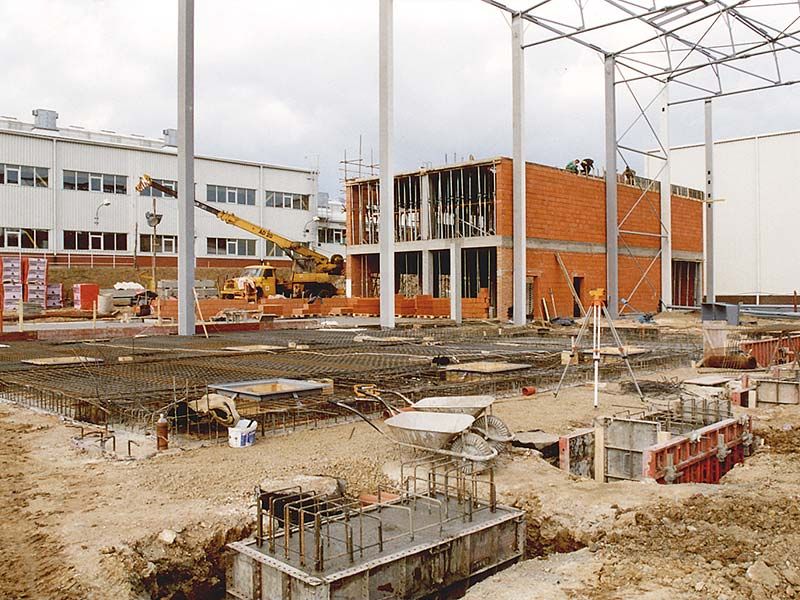 • monolitické železobetonové konstrukce (podlahy a technologický sklep haly, stropní) a zděné konstrukce,