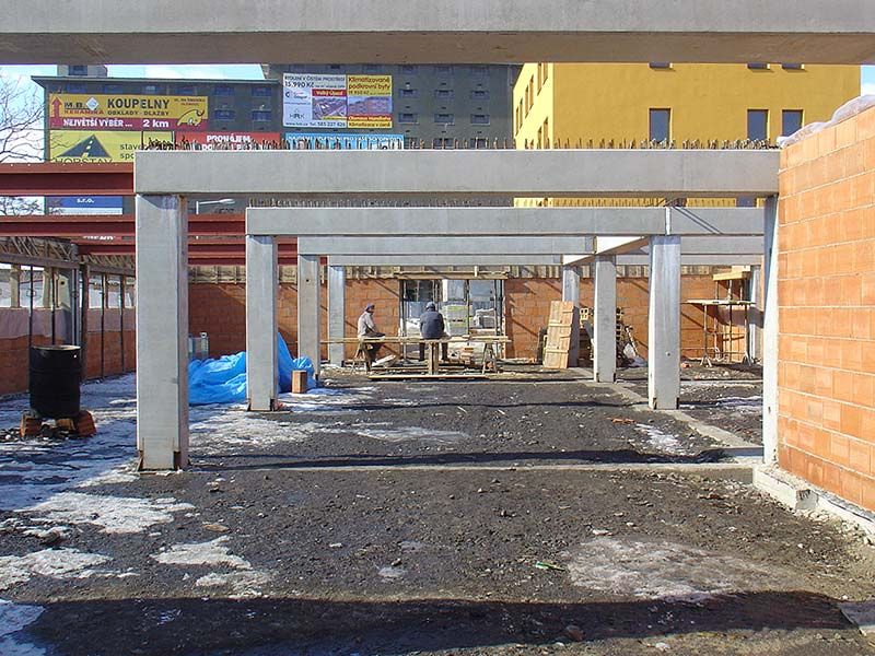 • The last floor ceiling as well as the construction of terrace was designed as a composite steel and concrete structure.