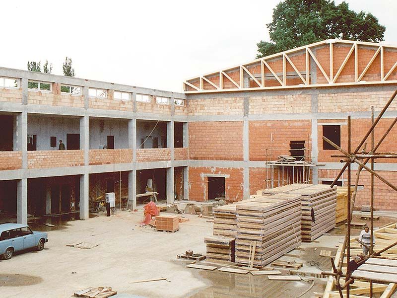 The upper structure of the dining room, school gymnasium and swimming pool has monolithic reinforced concrete ceilings, masonry walls and reinforced concrete columns.